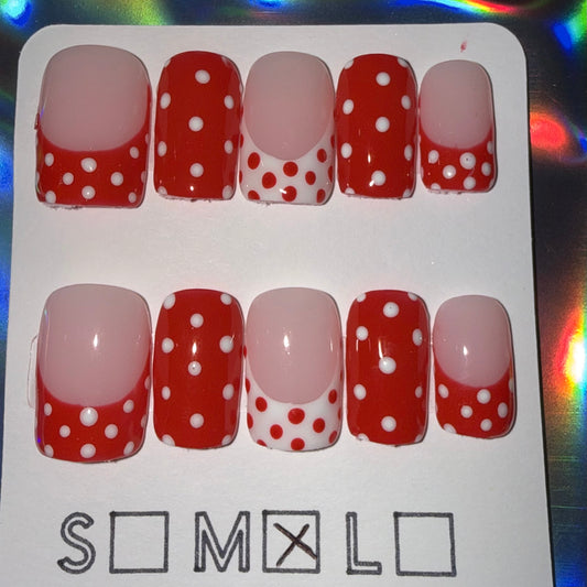 Classic Red & White Polka Dot Mix Press-On Nails β Short Square