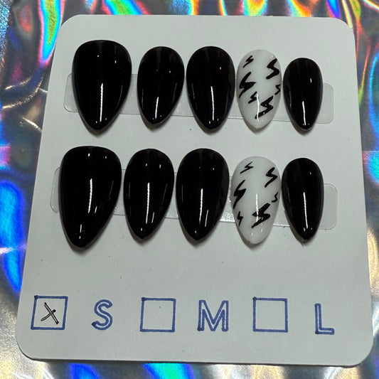 Electric Edge Vibe Lightning Bolt Press-On Nails | Short Almond Black & White Size Small