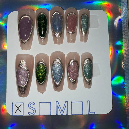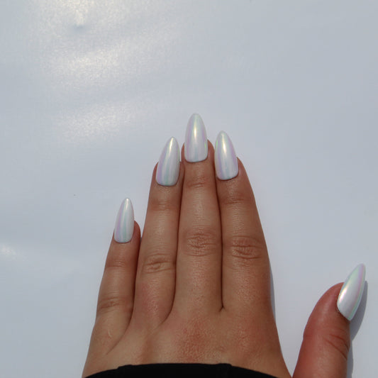 "Iridescent Siren" White Mermaid Chrome Press-On Nails | Medium Almond Size Small