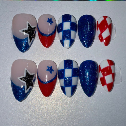 Patriotic Sparkle 4th of July Red, White & Blue Press-On Nails | Short Almond Size Small