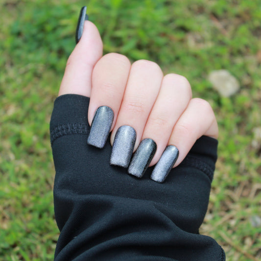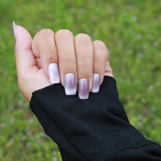 Mystic Feline Purple Cat Eye Press-On Nails | Medium Square Size Small