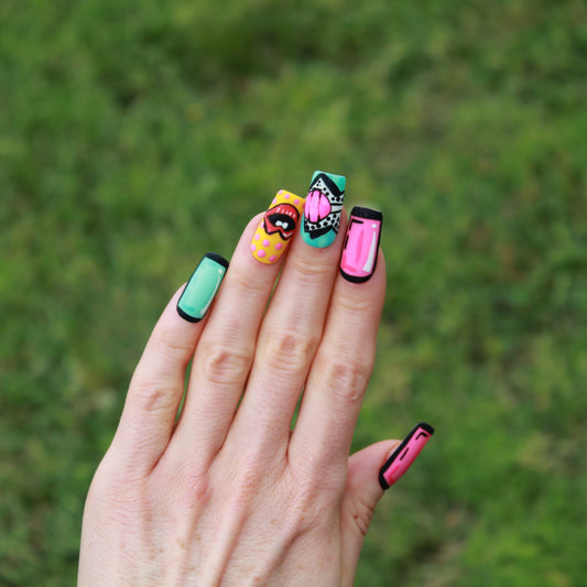 "Pop Culture Perfection" Pop Art Matte Press-On Nails | Medium Square Size Small