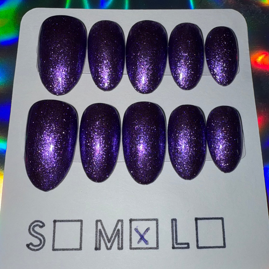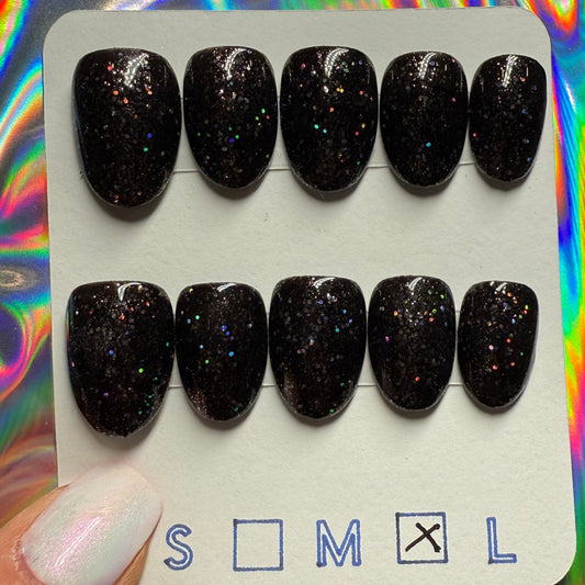 Midnight Sparkle Black Glitter Press-On Nails | Short Round Size Large