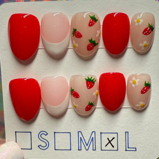 Strawberry Sweetness Strawberry & French Tip Press-On Nails | Short Round Size Large