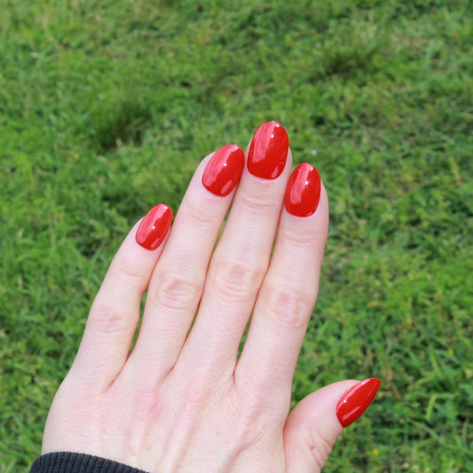 "Scarlet Kiss" Bright Red Press-On Nails | Short Round Size Medium