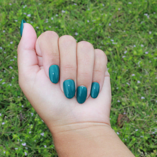 Emerald Envy Dark Hunter Green Press-On Nails | Short Round Size Small