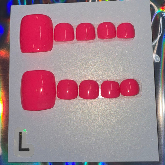 Pink Pedi Pop Hot Pink Press-On Toenails | Short Round Size Large