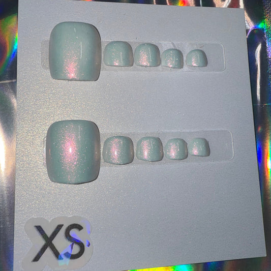 Frosted Flash White Chrome Press-On Toenails | Extra Small