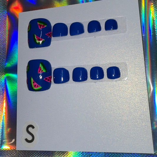 Berry Splash Dark Blue & Watermelon Press-On Toenails | Small