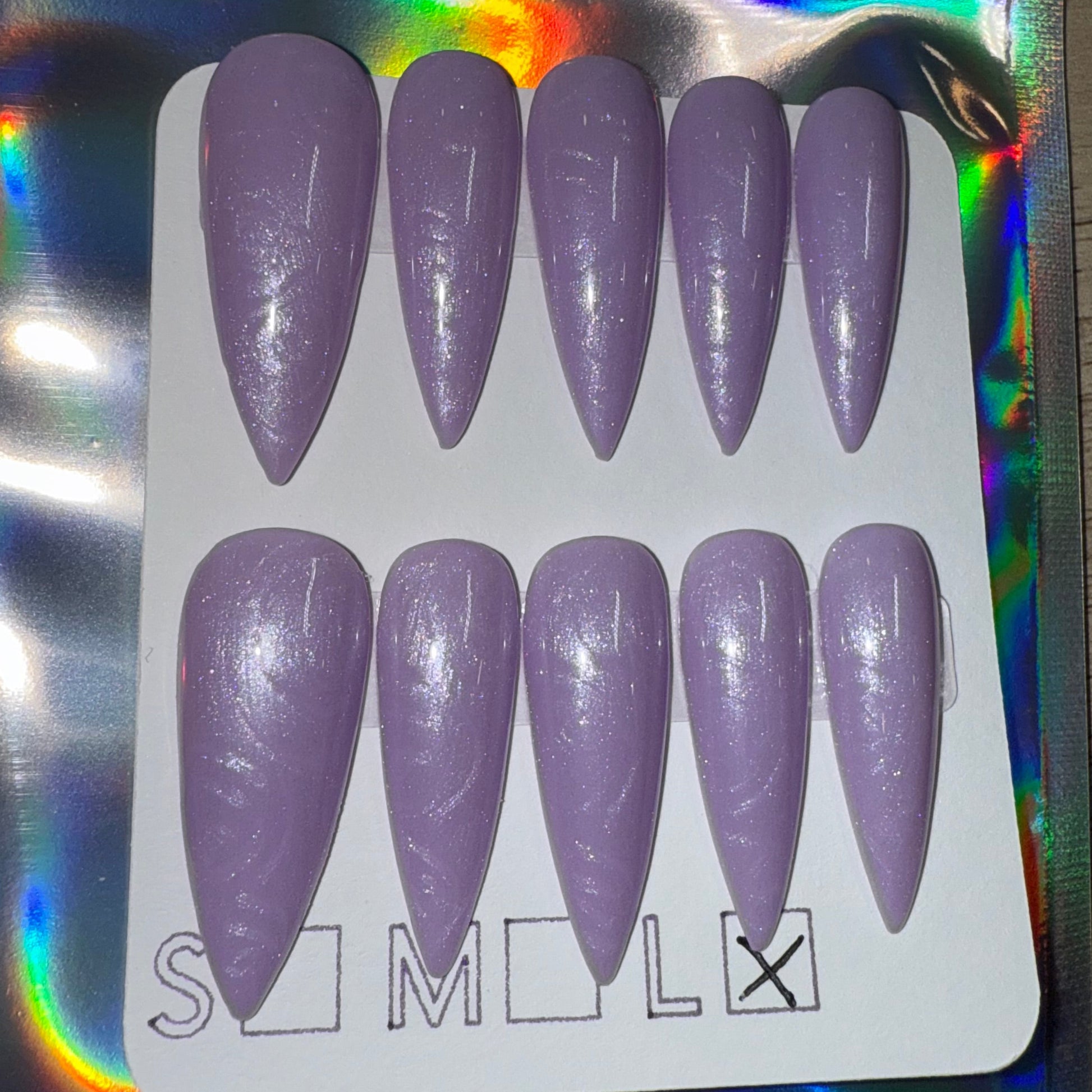 - 10 Pre-Made Press-On Nails in Size Large