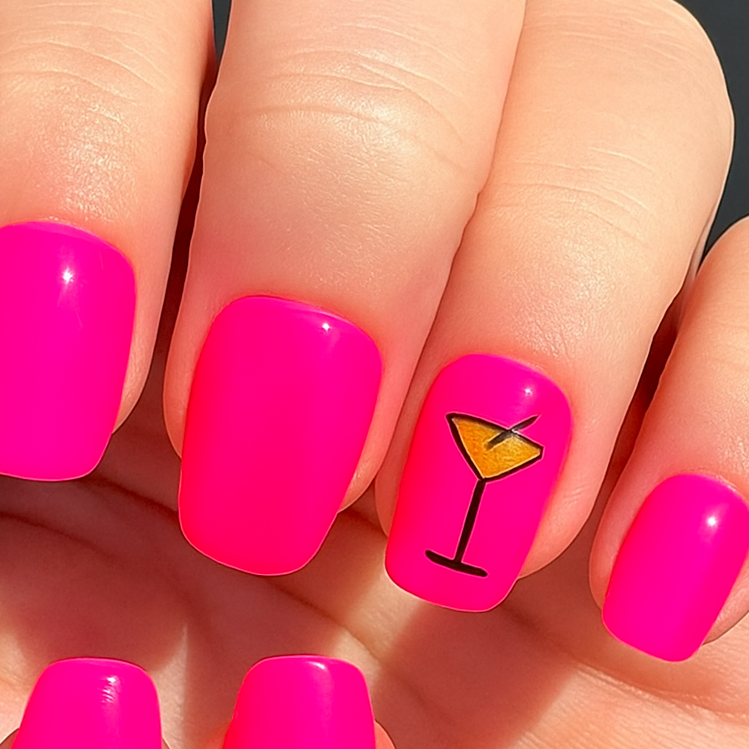 🍸 Playful Martini Accent: The ring finger features a fun, hand-painted martini glass, making it the perfect manicure for any celebration.
